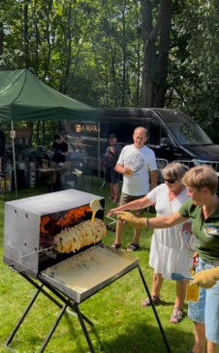 Warstwa po warstwie, z każdym obrotem, splata się coś z historii, coś z codzienności, coś z pogranicza — przestrzeni spotkania. W tej okolicy Sękacz to nie tylko wypiek, to kawałek historii i tradycji. Sierpniowe Święto Sękacza jest częścią tożsamości Żytkiejm i symbolem małej, ale silnej wspólnoty, której rytm tworzą tu ludzie, miejsca i tradycje.